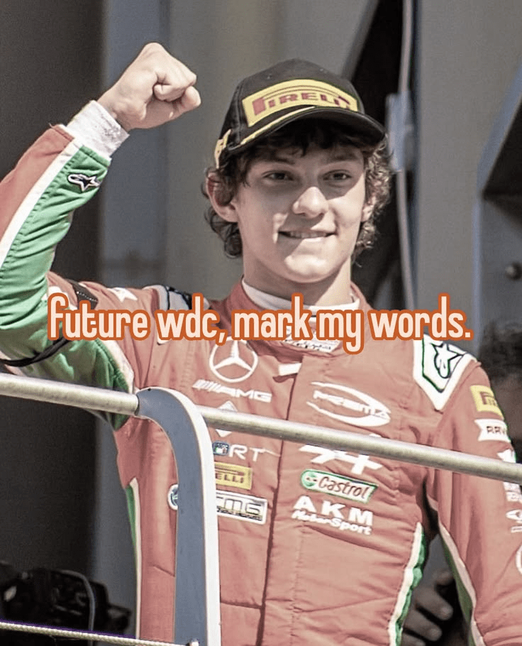 If all goes well this season for the Italian, he could smash Seb Vettel’s famous record and become the youngest ever Champion of the World in Formula One… And if not this year, I, for one, am fully confident Kimi Antonelli is going to become WDC one day. As this pin I found on Pinterest suggests; just mark my words.